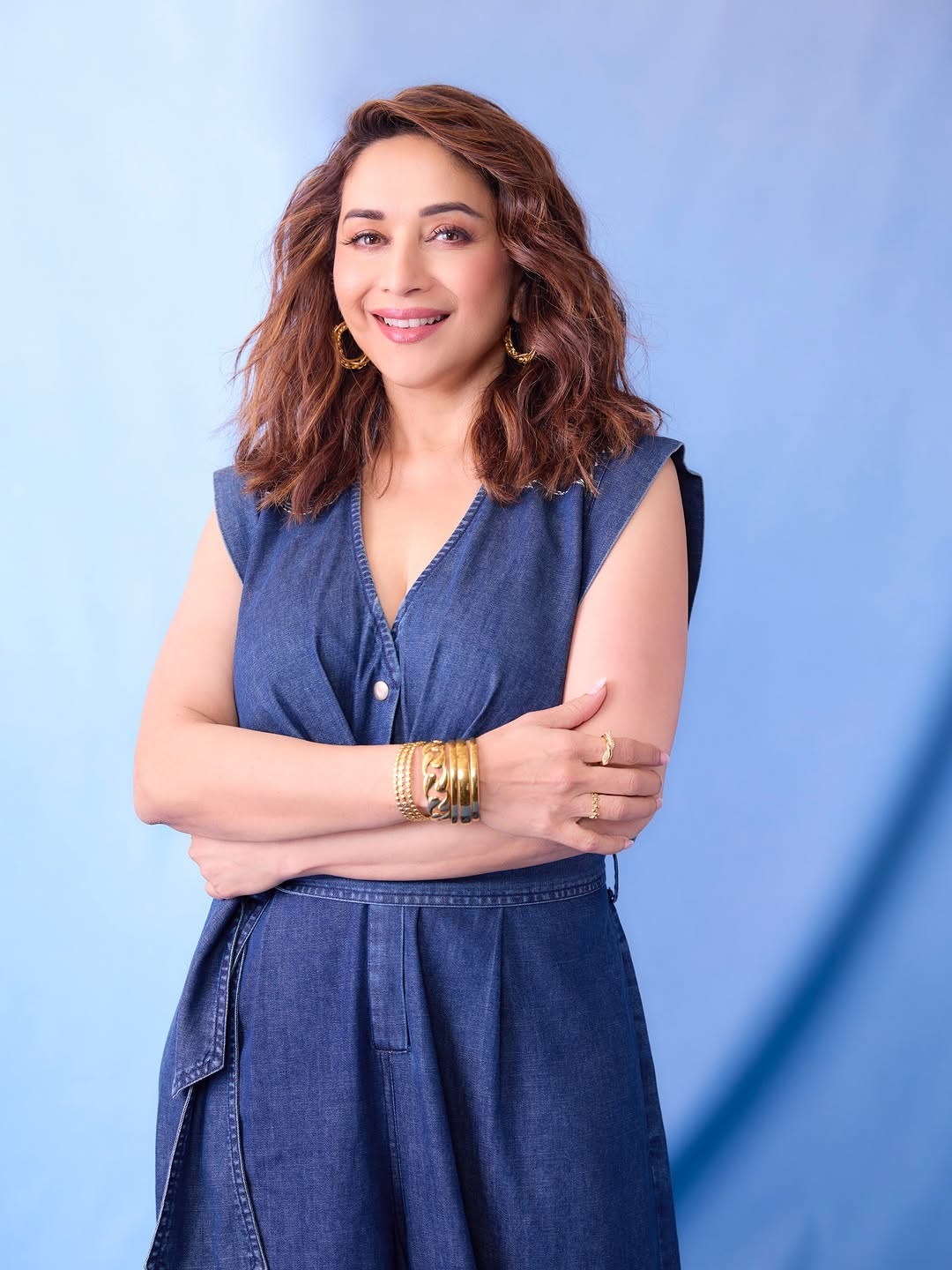 डेनिम लूकमध्ये माधुरी देतेय चाहत्यांना फॅशन गोल्स
