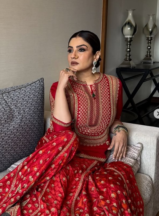 रवीना टंडनच्या पारंपरिक लूकने वेधल्या चाहत्यांच्या नजरा, फोटो व्हायरल