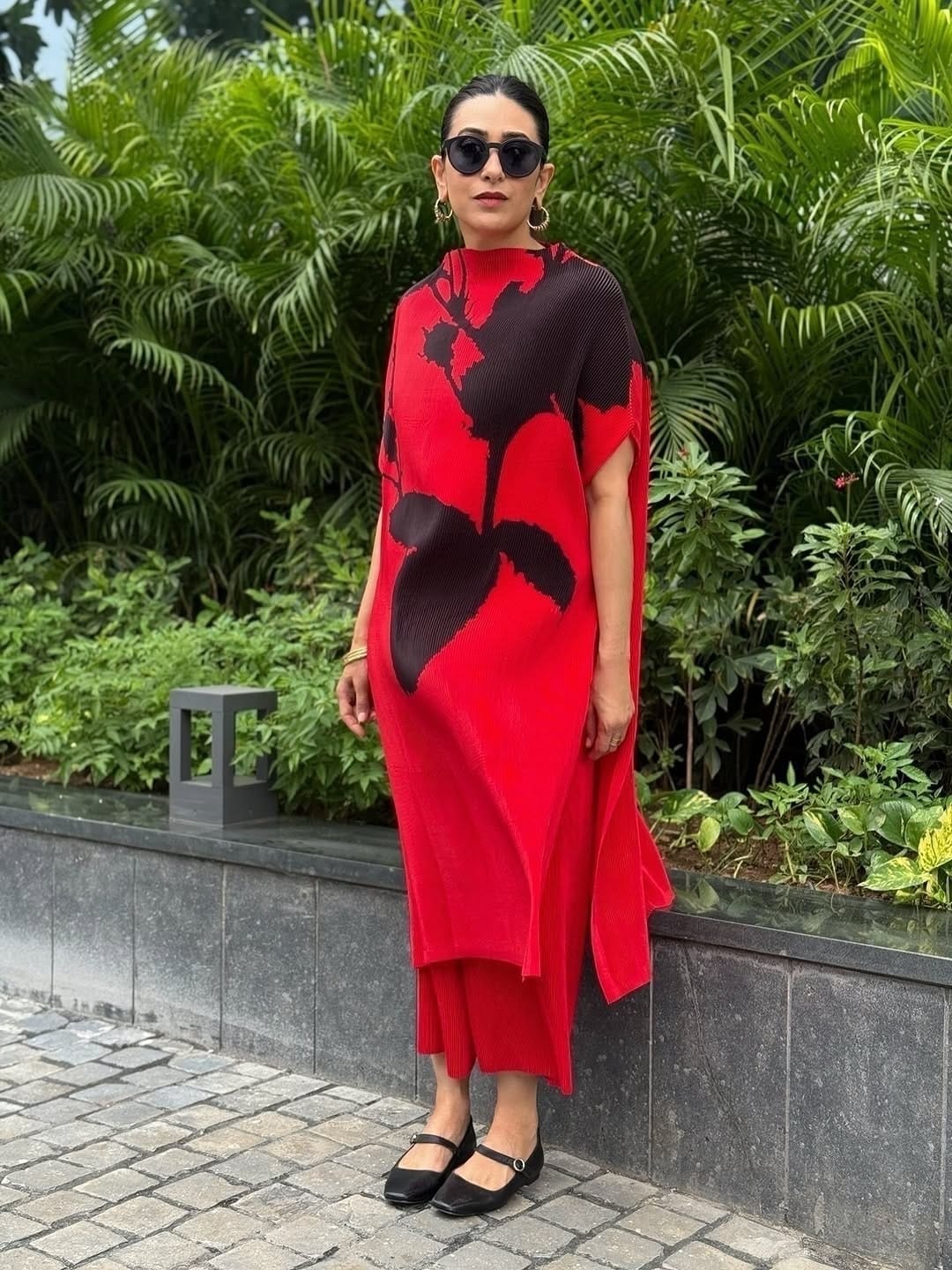लाल आणि काळ्या ड्रेसमध्ये करिश्माने फोटो पोस्ट केलेत.