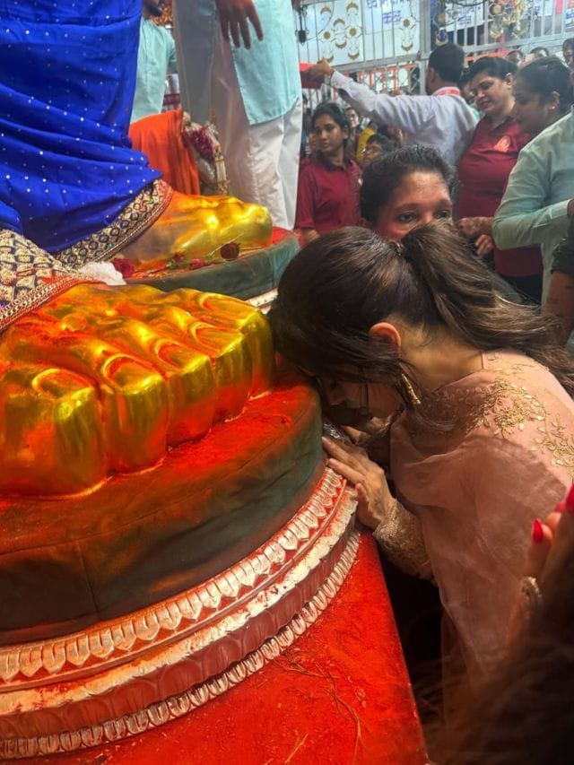 नुसरतने हातात नारळ घेऊन लालबाग राजाचे आशीर्वाद घेतले. राजाच्या चरणी नतमस्तक होऊन प्रार्थना केली