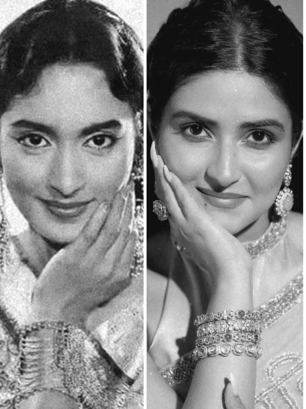 बंदिनी, सुजाता, मेरी जंग, सीमा, मिलन, मैं तुलसी तेरे आंगन की आदी नावे प्रनूतनच्या साडीवर होती