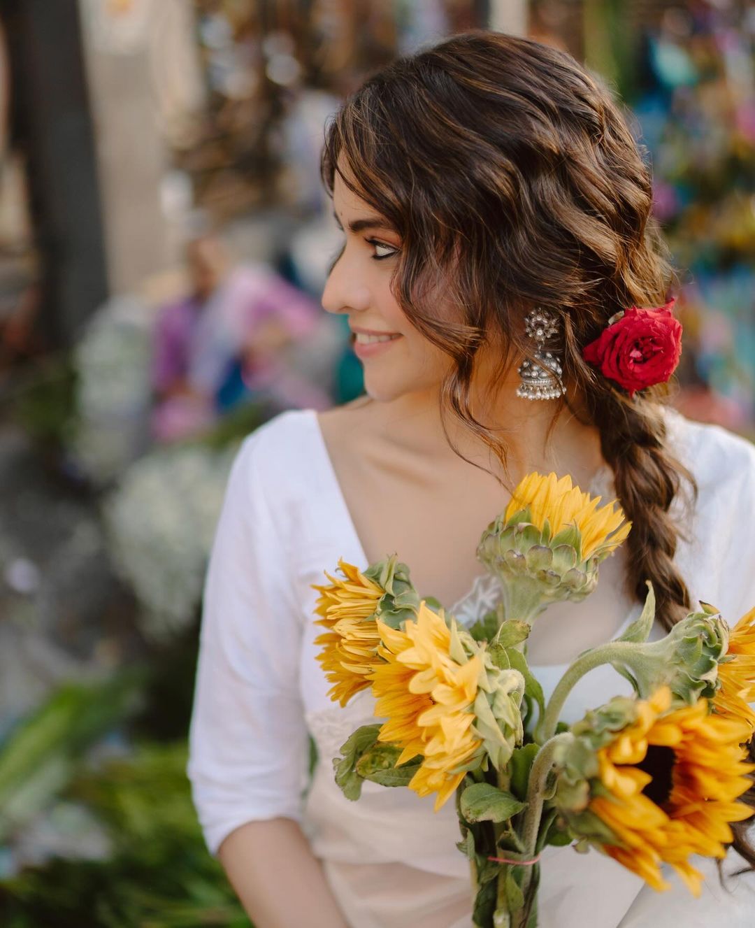 अभिनेत्रीने केसांमध्ये लावलं गुलाबाचे फूल