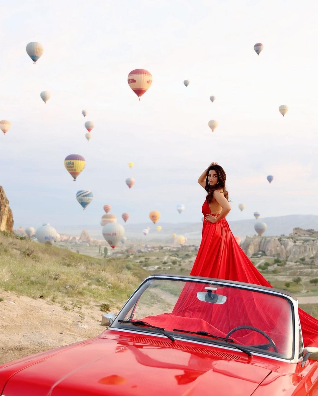 लाल रंगाच्या कारसमोर अभिनेत्रीच्या धडाकेबाज पोज