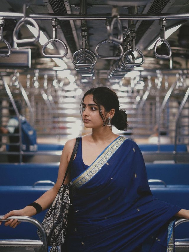 निळ्या साडीमध्ये अभिनेत्री करतेय लोकलने प्रवास