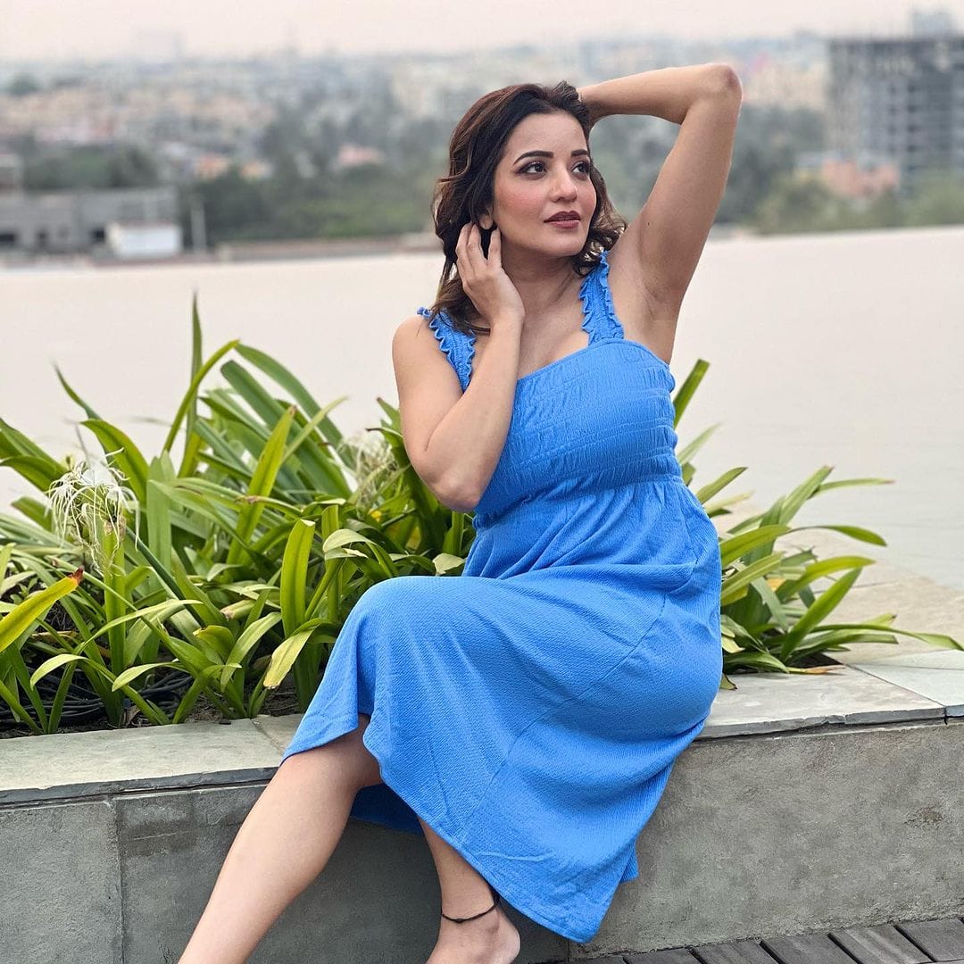निळ्या ड्रेसमध्ये अभिनेत्री मोनालिसा दिसतेय खूपच हॉट