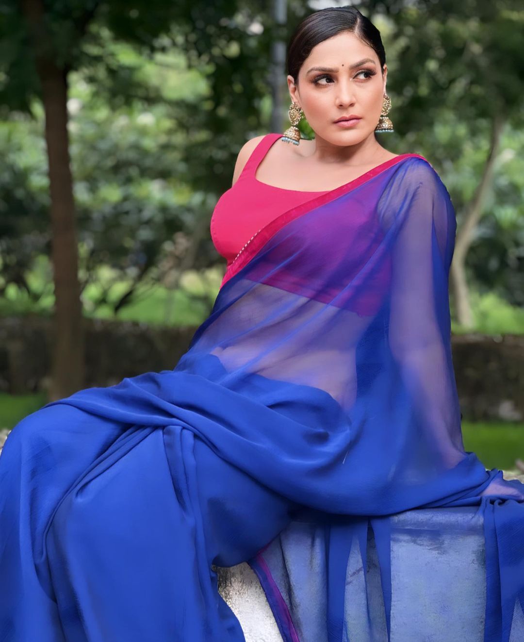 निळ्या रंगाच्या साडीवर अभिनेत्रीने हे फोटोशूट केलं आहे
