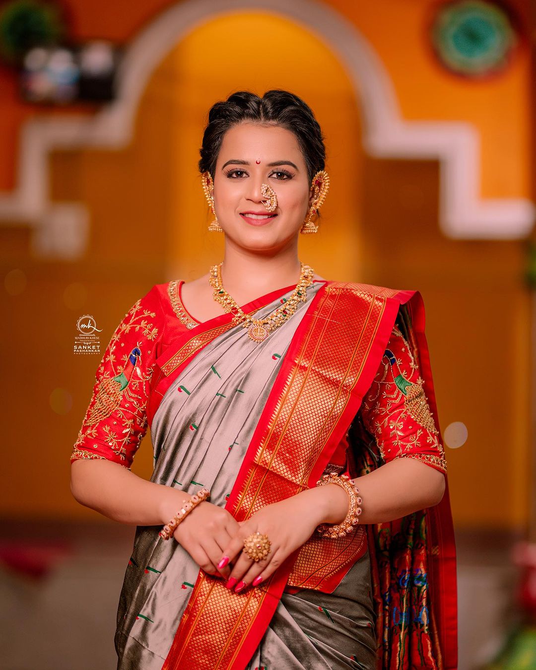 राखाडी रंगाच्या साडीत प्राजक्ता गायकवाडचं मनमोहक सौंदर्य
