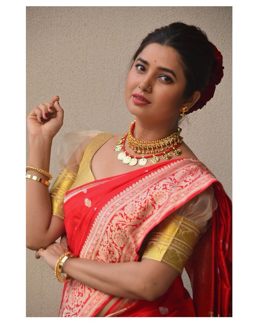 लाल रंगाच्या साडीमधील फोटो शेअर