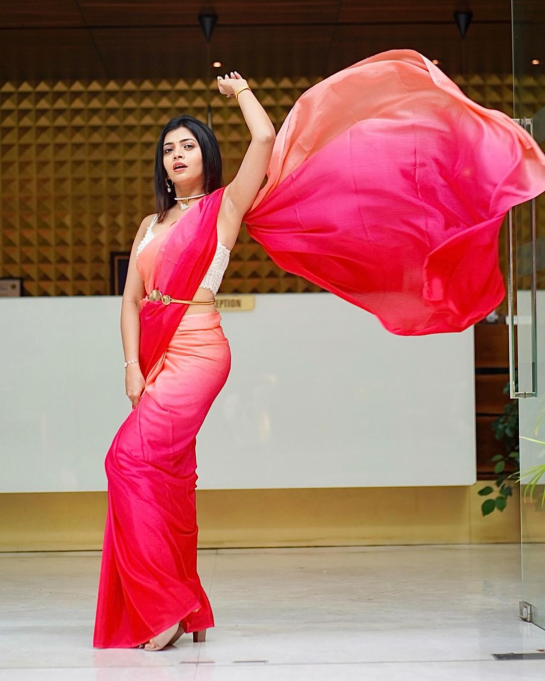अभिनेत्रीच्या गुलाबी साडीमधील फोटोंनी केलं चाहत्यांना घायाळ