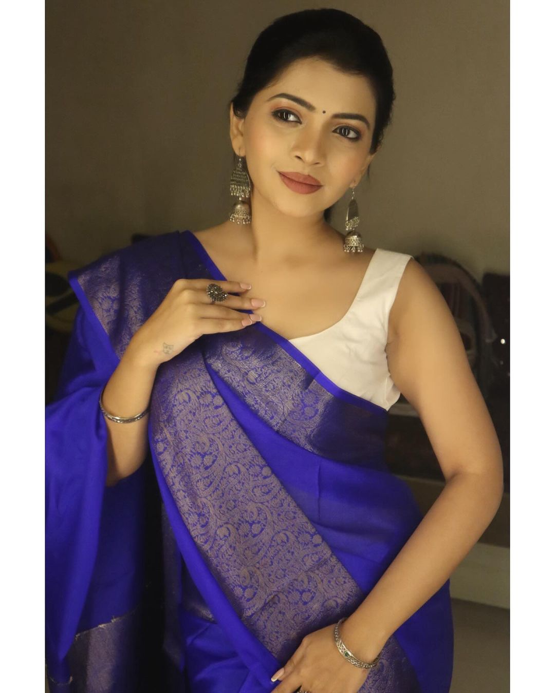 निळ्या साडीमध्ये रुचिरा जाधवचं खुललं सौंदर्य