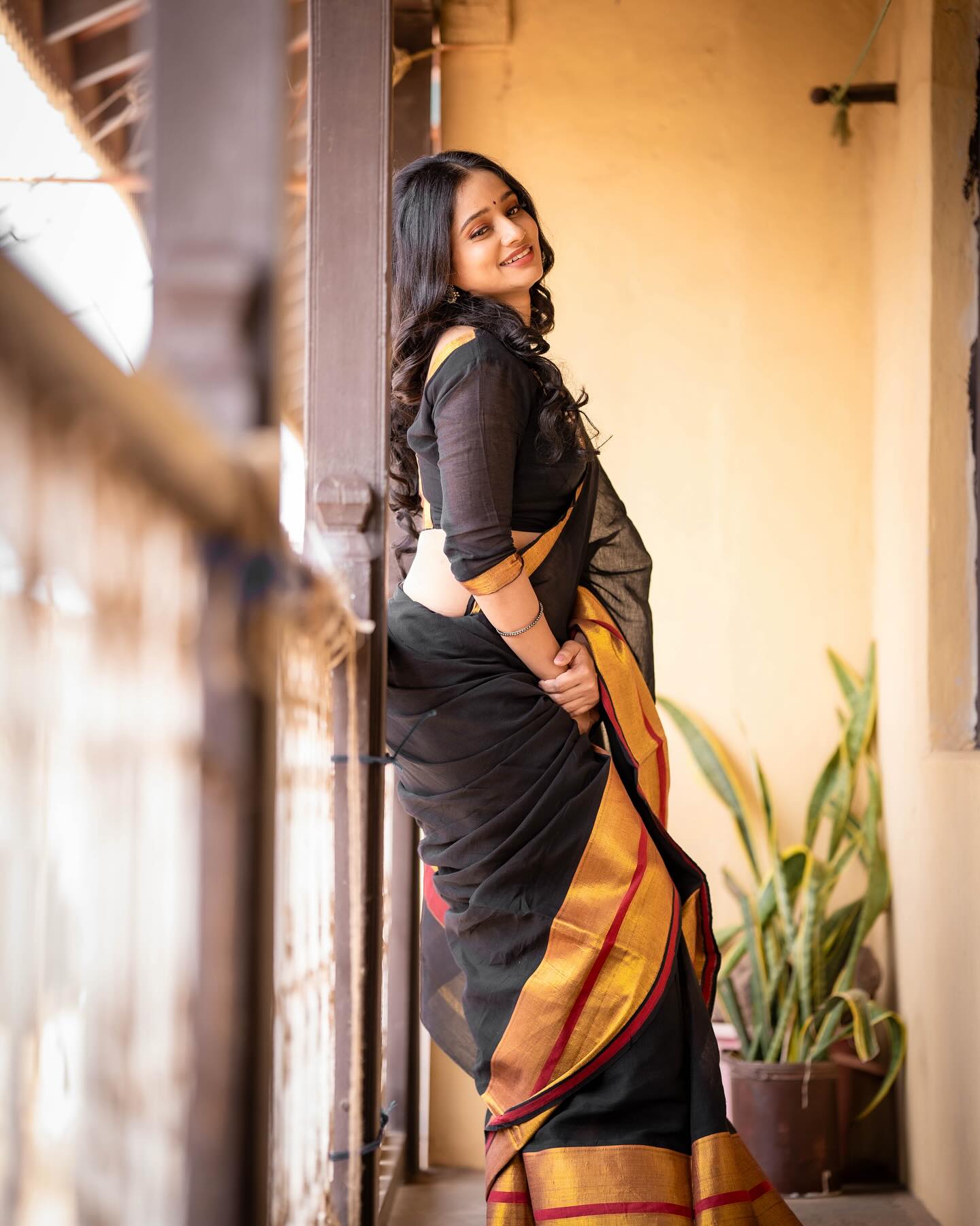 सुंदर लुक, हटके स्टाईल, काळ्या साडीमधील अभिनेत्री कोण?