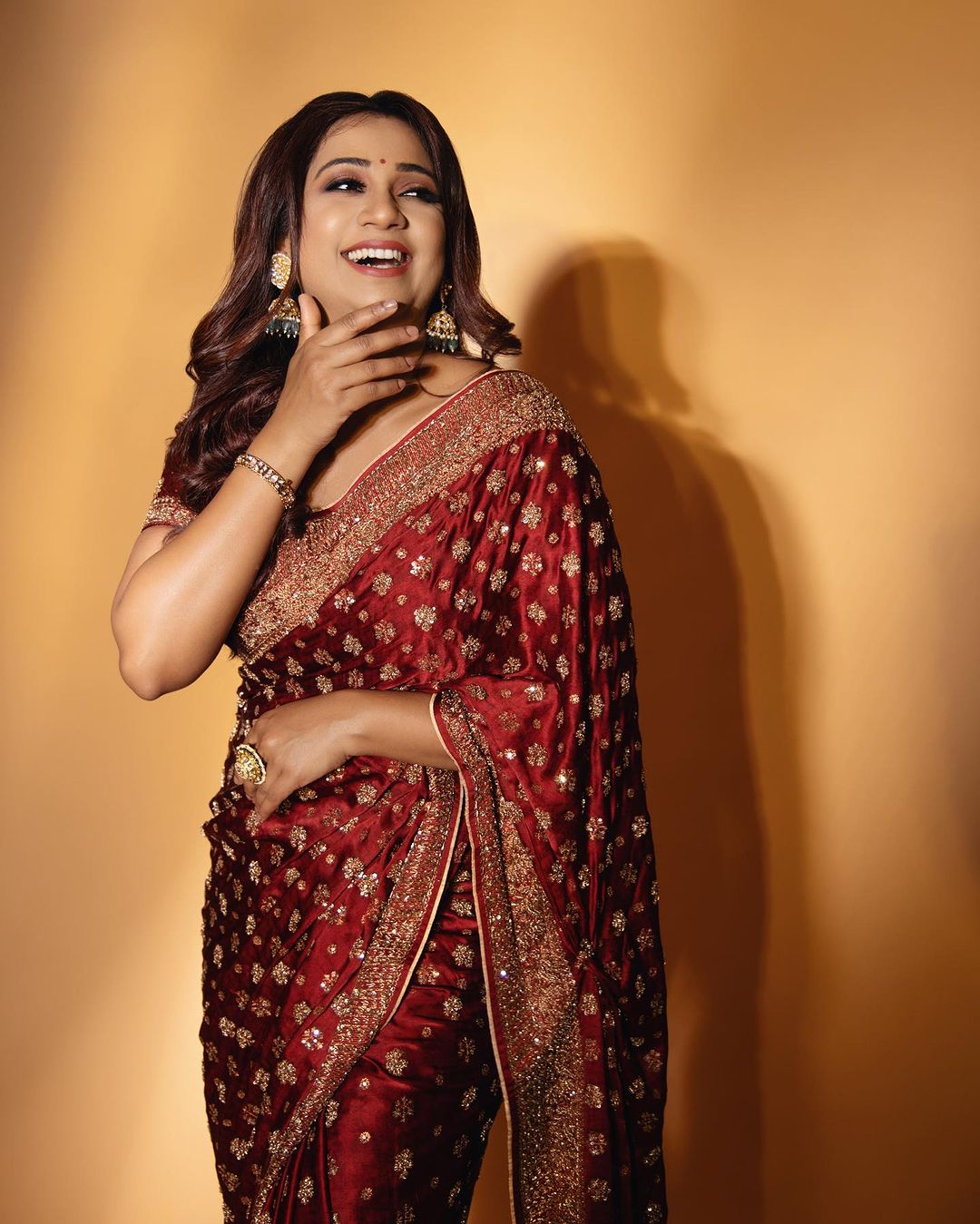 लाल रंगाच्या साडीमध्ये श्रेया घोषाय