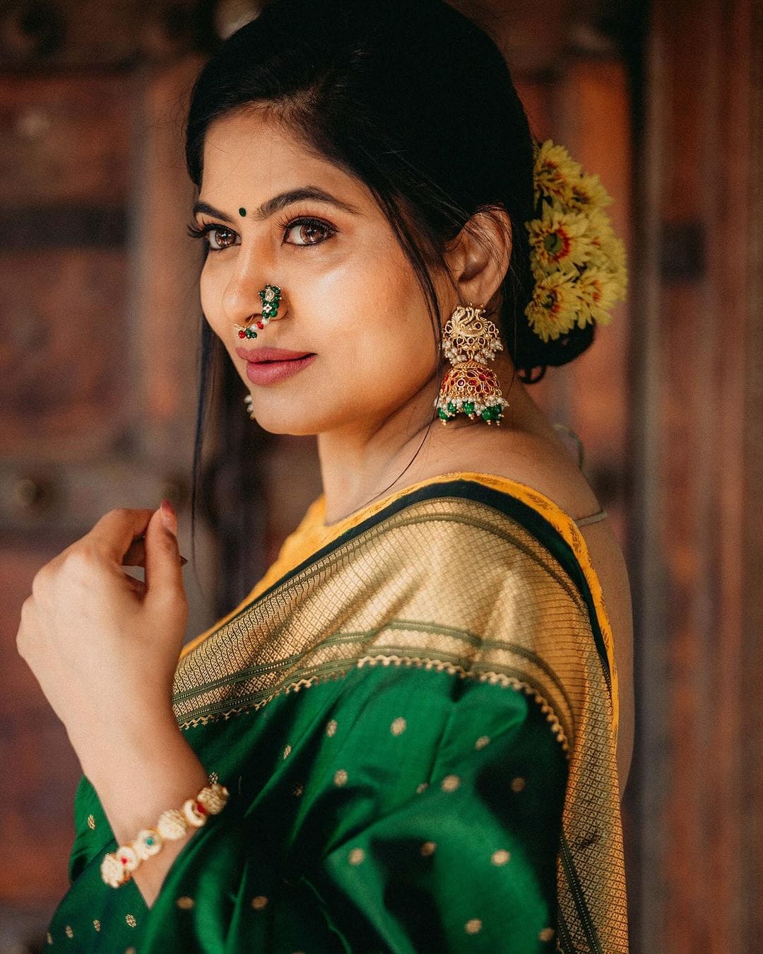 सबसे हटके मानसी नाईकचे झटके, हिरव्या साडीत खास लुक
