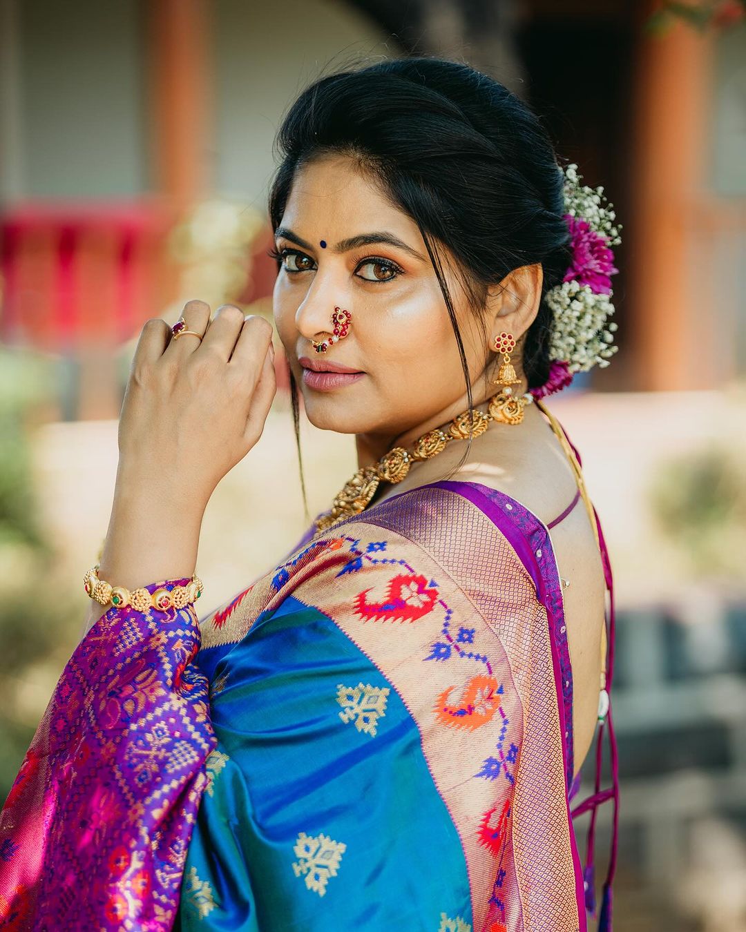 मोरपंखी साडीत अभिनेत्रीचं सौंदर्य खुललं