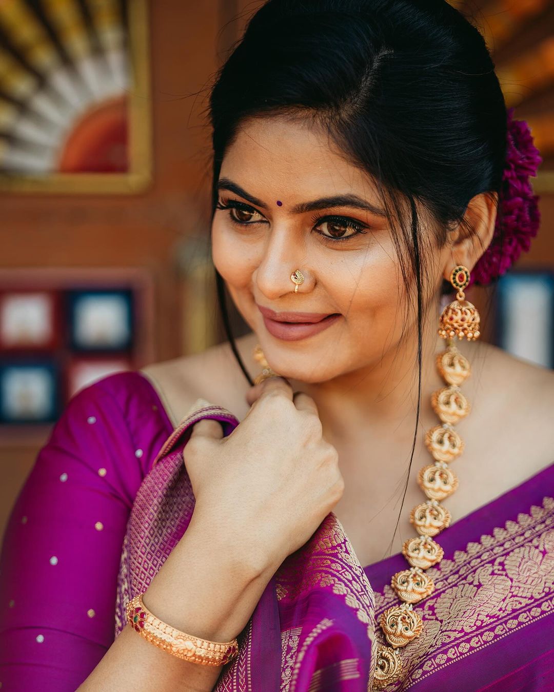 जांभळ्या साडीत अभिनेत्री दिसतेय सुंदर