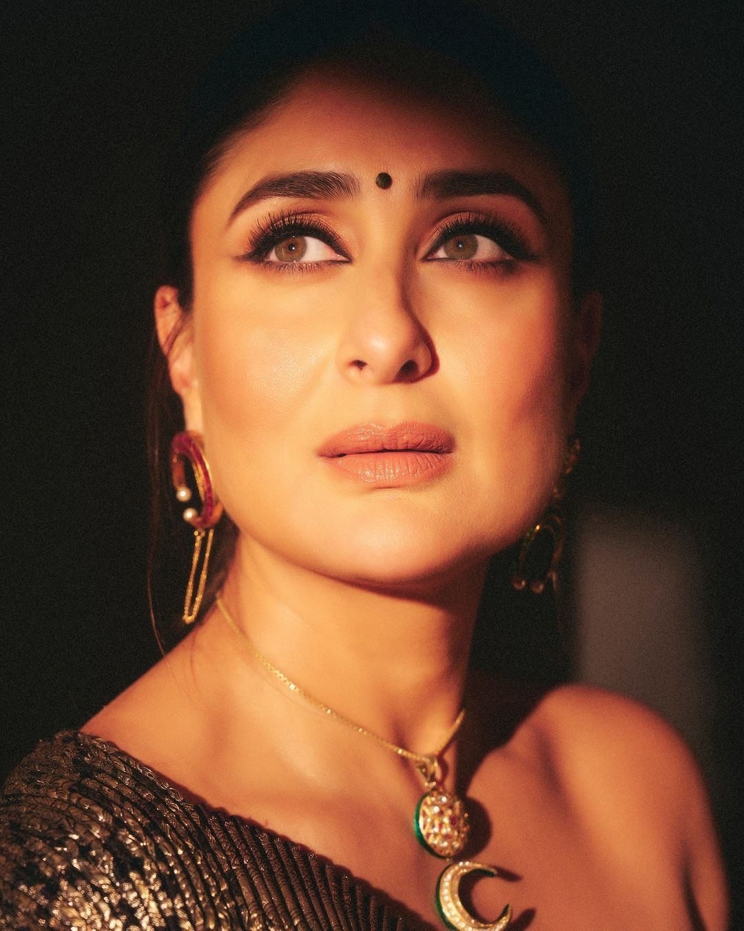 या लूकला साजेसे असे कानातले, नेकलेस आणि टिकलीमुळे खुललं करीनाचं सौंदर्य