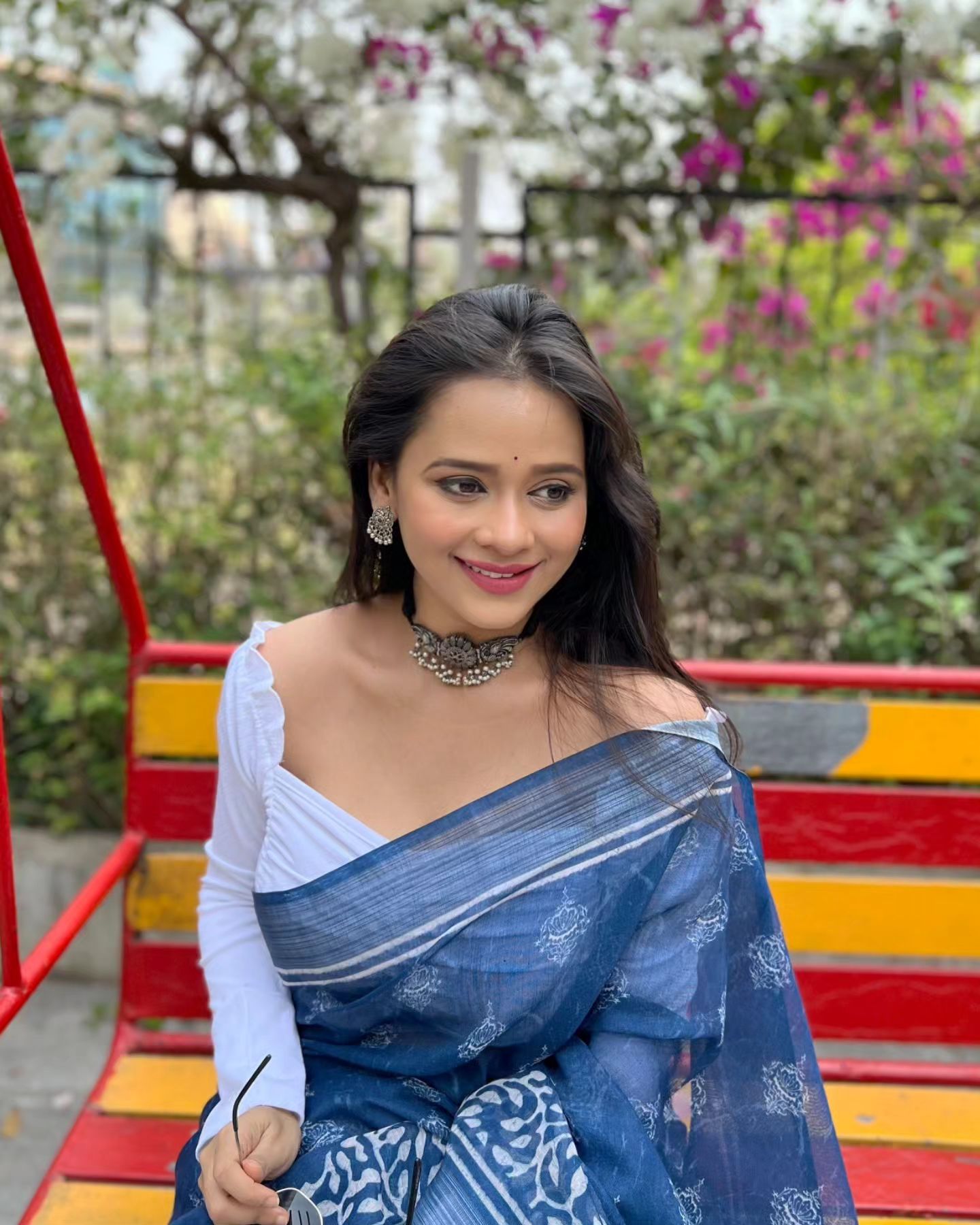 निळ्या साडीमध्ये अभिनेत्री मधुरा जोशी