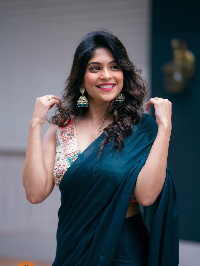 निळ्या साडीमधील अभिनेत्रीचे फोटो तुफान व्हायरल
