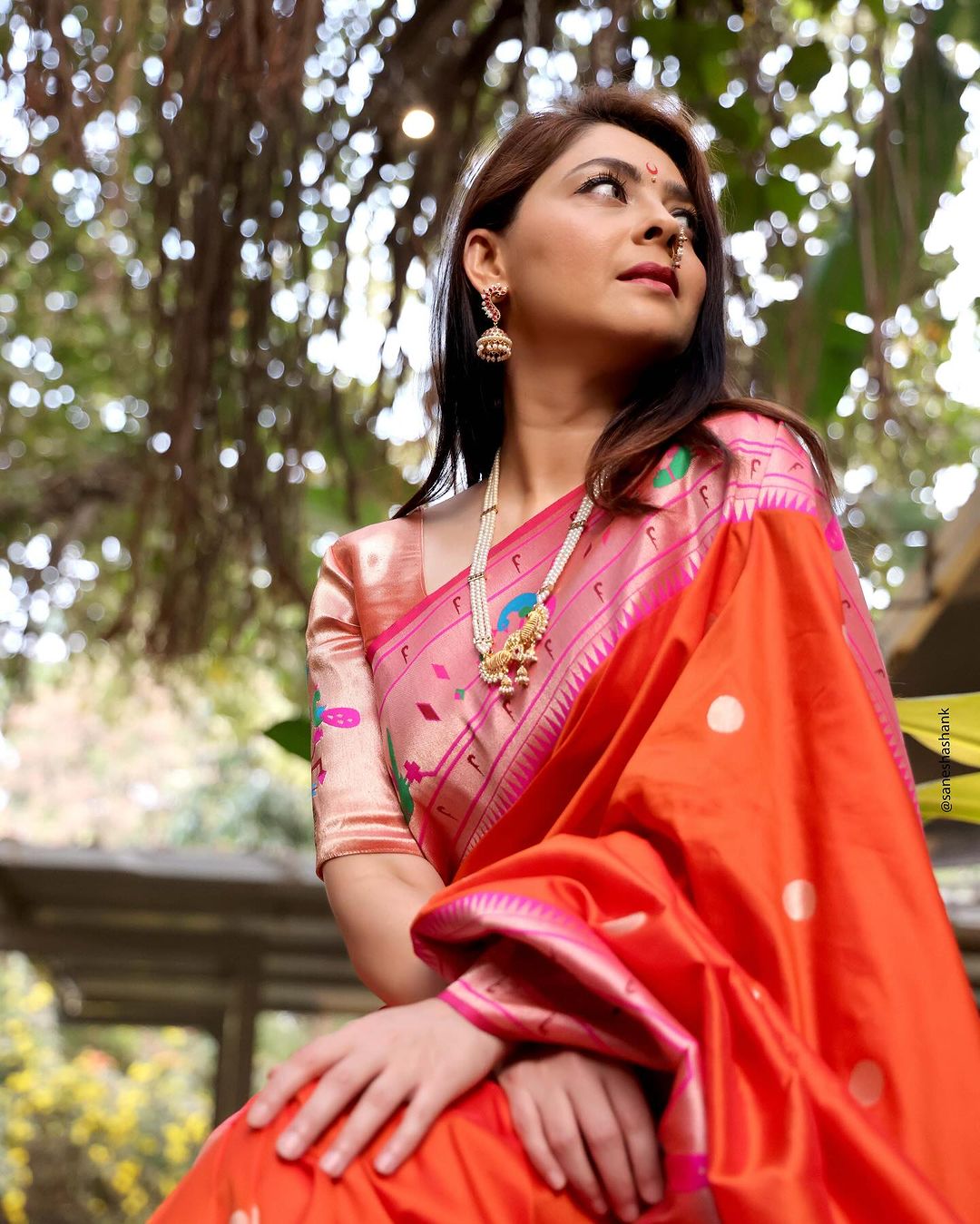केसरी रंगाच्या साडीमध्ये अभिनेत्री खूपच सुंदर दिसतेय