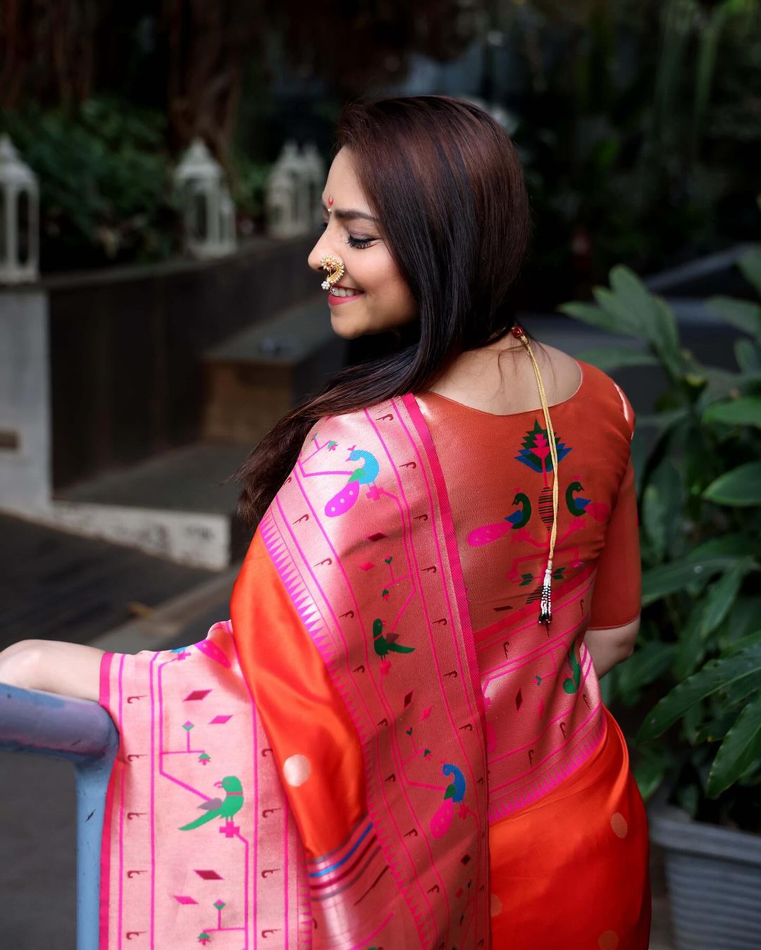 केसरी रंगाच्या नऊवारीसाडीमध्ये सोनालीचा सुंदर लुक
