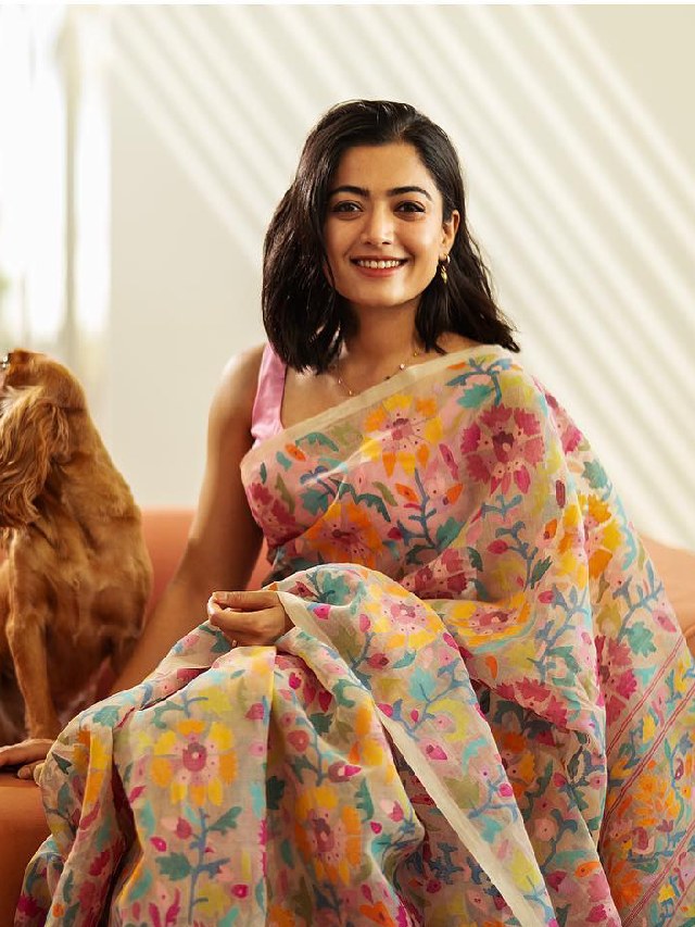 मल्टीकलर साडीत रश्मिका मंदाना, क्यूट स्माईल पाहून चाहते घायाळ