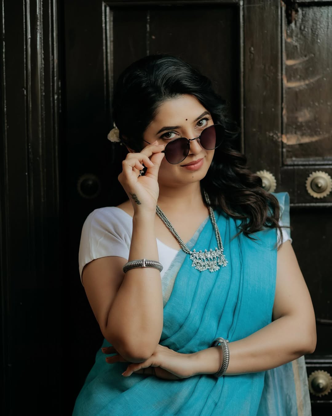 अभिनेत्री प्राजक्ता माळीने निळ्या साडीतील सुंदर फोटो केले पोस्ट