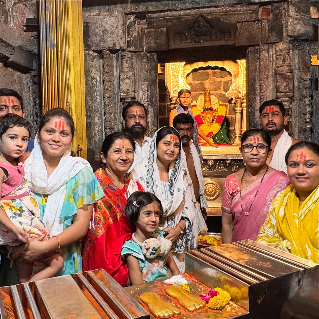 प्राजक्तासोबत तिच्या कुटुंबीयांनीही घेतला देवीचा आशीर्वाद