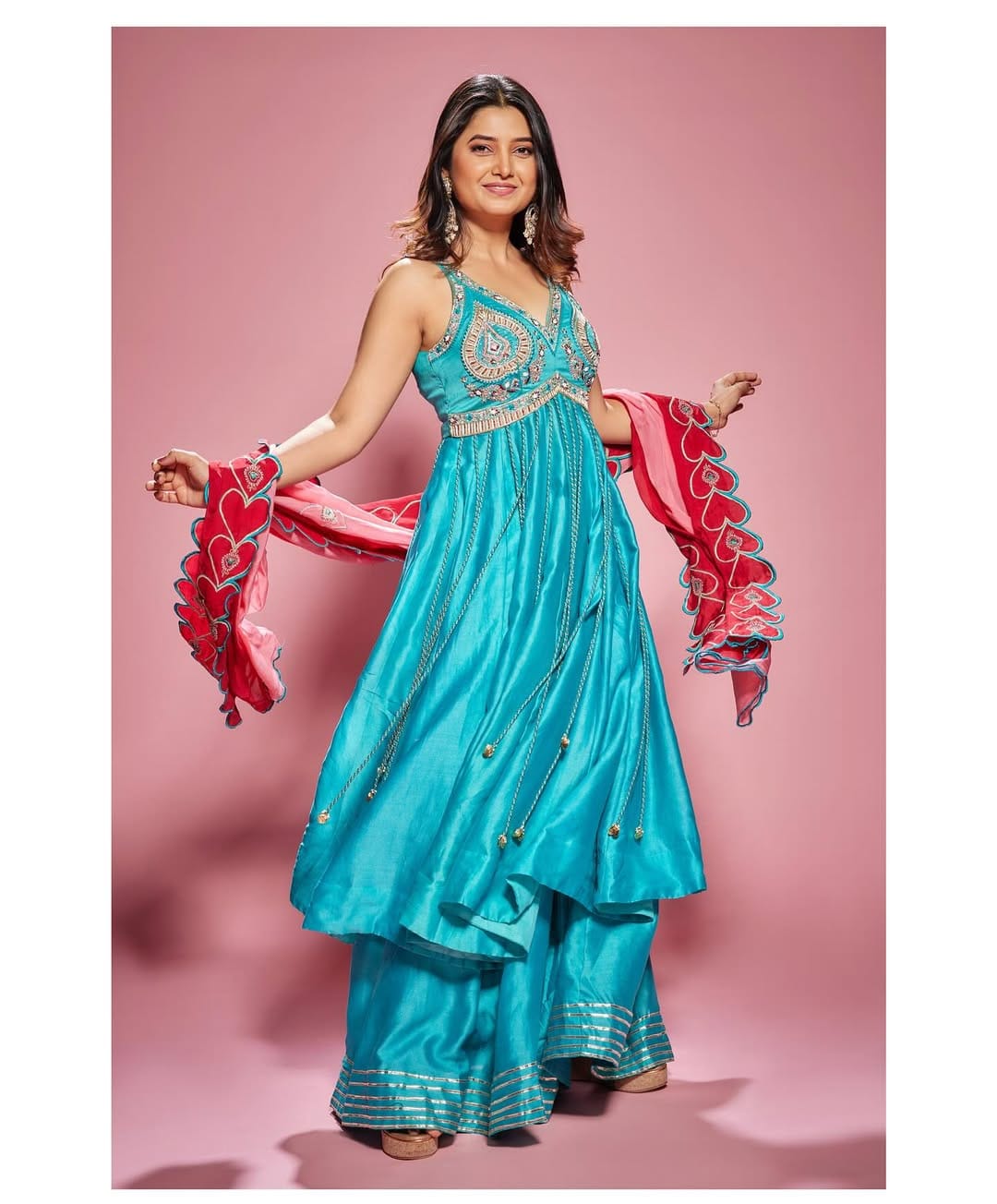 निळ्या रंगाच्या सुंदर ड्रेसमध्ये प्राजक्ताचं मनमोहक फोटोशूट