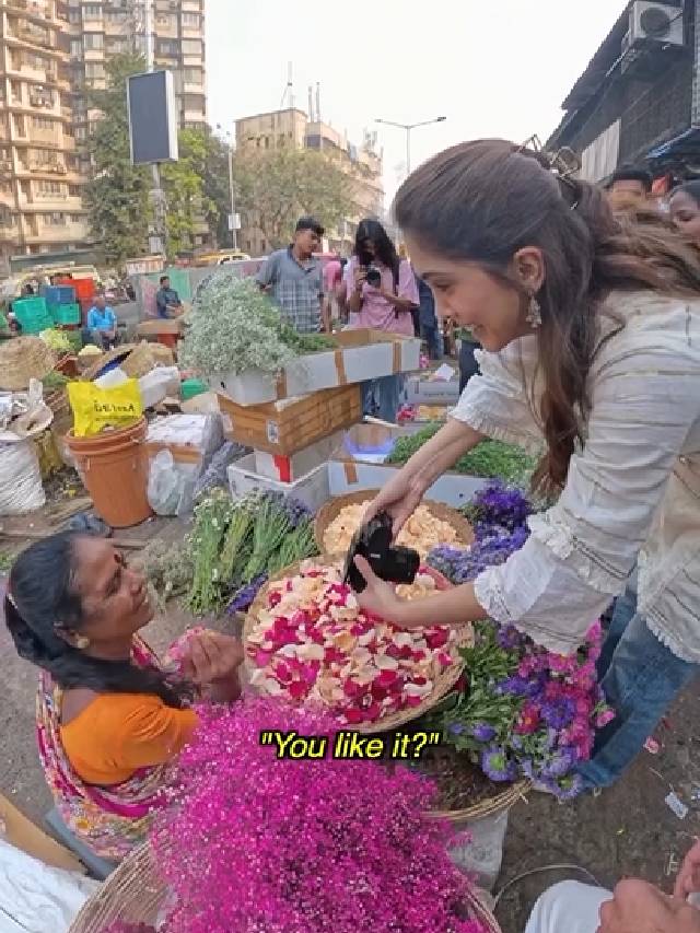 यावेळी शर्वरीनं फुलविक्रेत्या महिलांशी साधला मनमोकळा संवाद