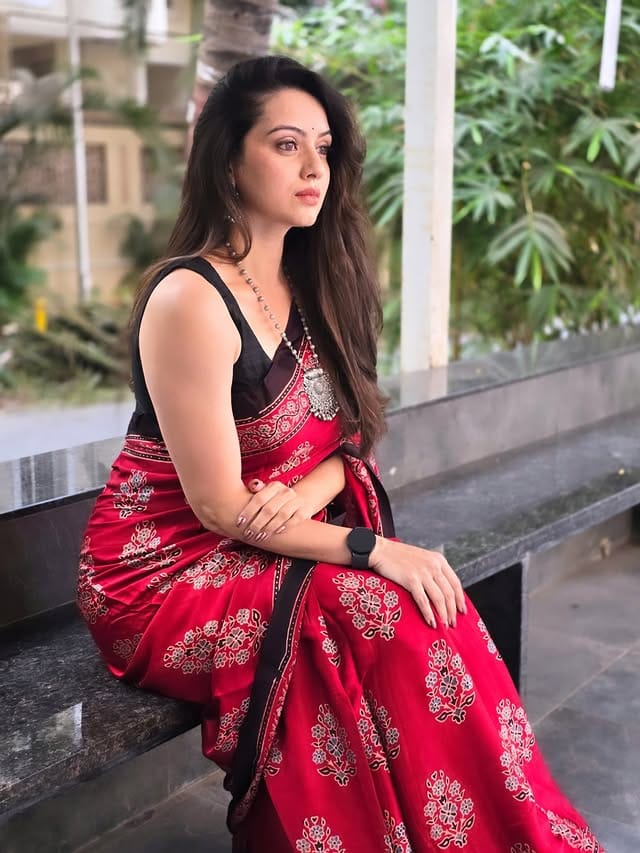 या फोटोमध्ये ती खूप सुंदर दिसत आहे. त्यासोबत तिची साडी देखील सुंदर दिसत आहे.