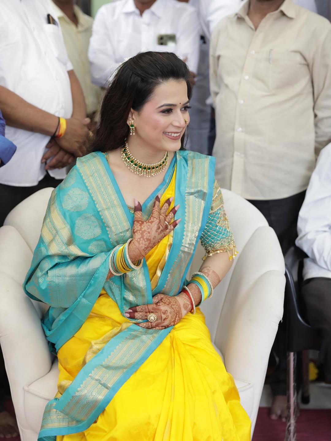 पिवळी साडी आणि त्याला साजेसा असा प्राजक्ताचा लूक