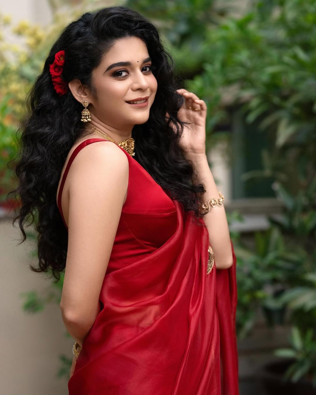 सध्या तिच्या लाल साडीमधील फोटो प्रचंड व्हायरल होत आहेत.