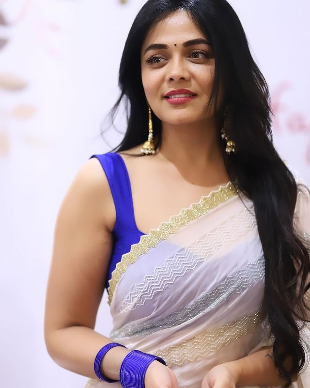 प्रार्थना बेहेरे पांढऱ्या रंगाच्या साडीत प्रचंड सुंदर दिसते.