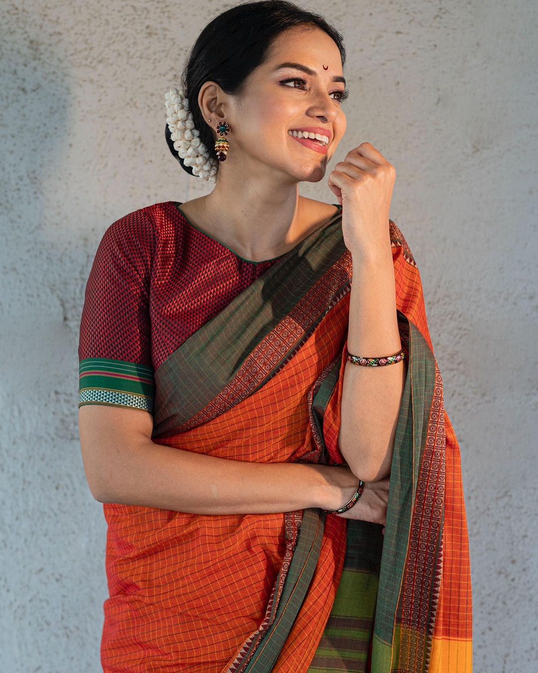 केशरी रंगाच्या साडीतील फोटोशूट चर्चेत